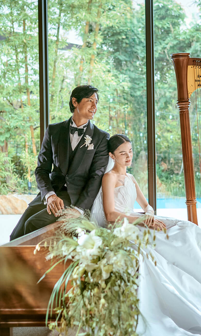 セレモニーでは美しいハープの⾳⾊が響き渡ります。