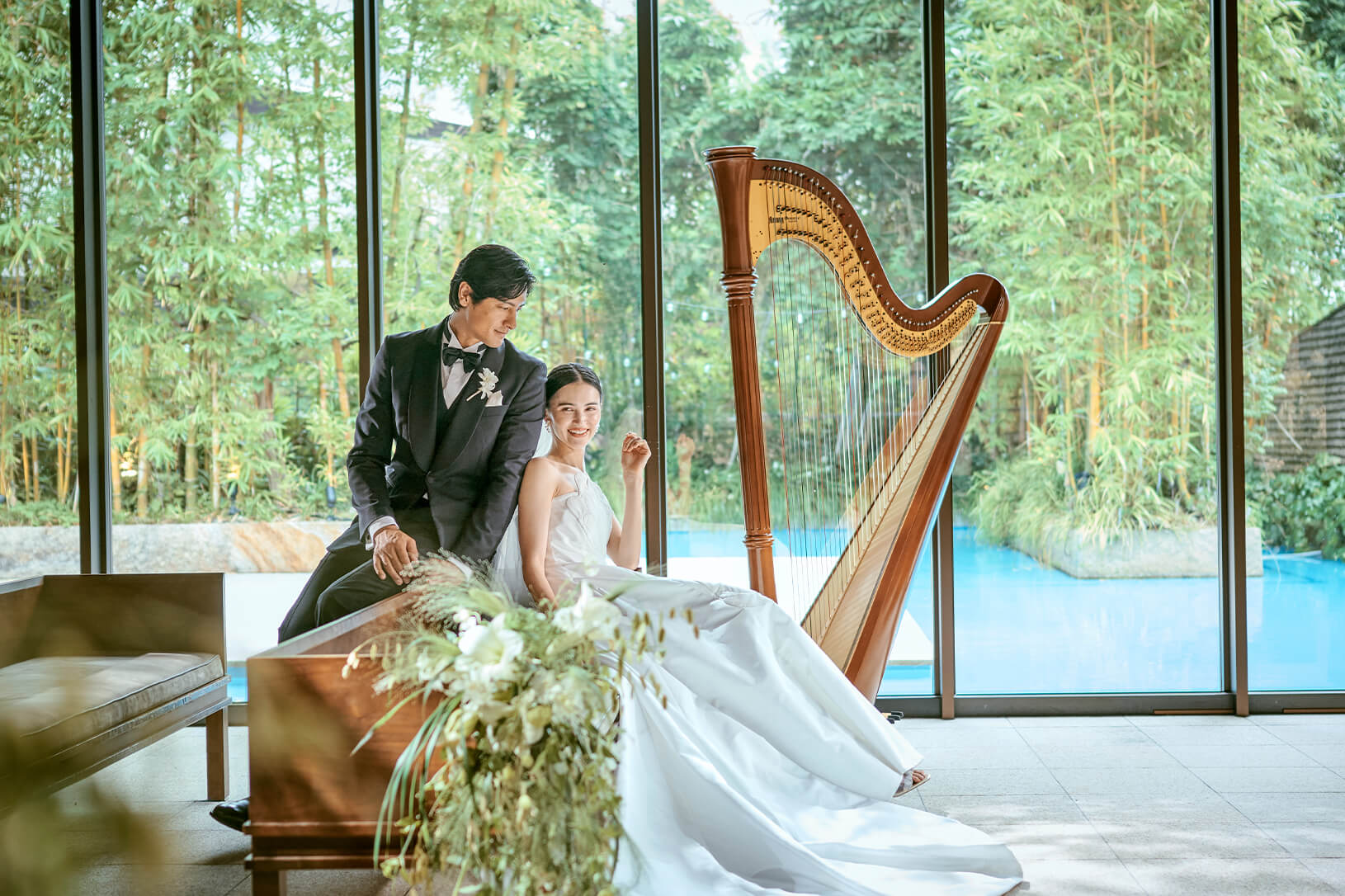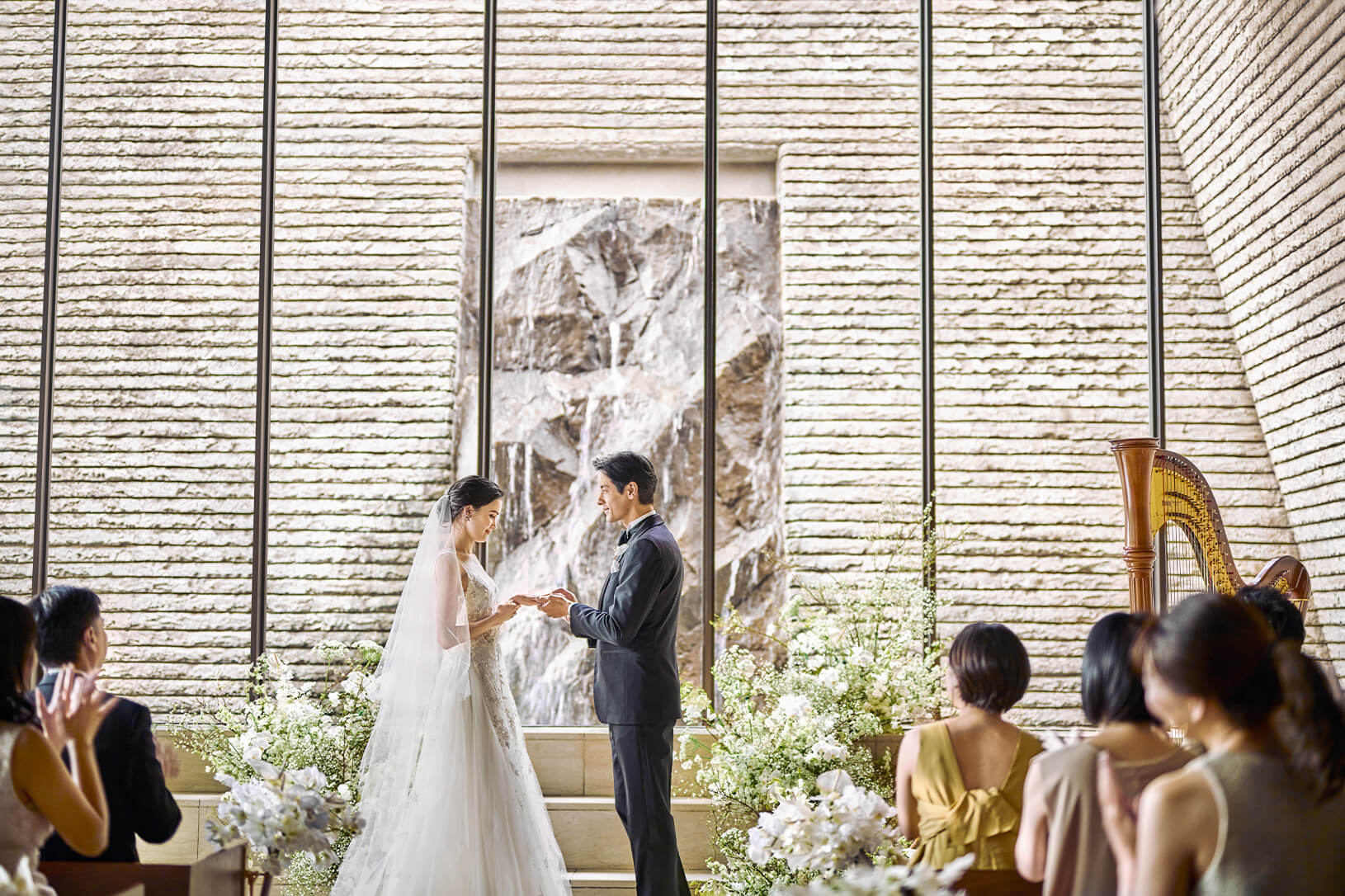 セレモニーでは美しいハープの⾳⾊が響き渡ります。