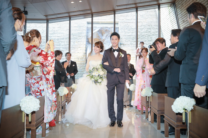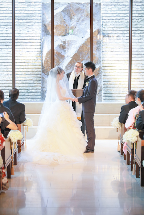 燦燦と入る自然光に包まれたチャペルで、おふたりは誓いを立てました