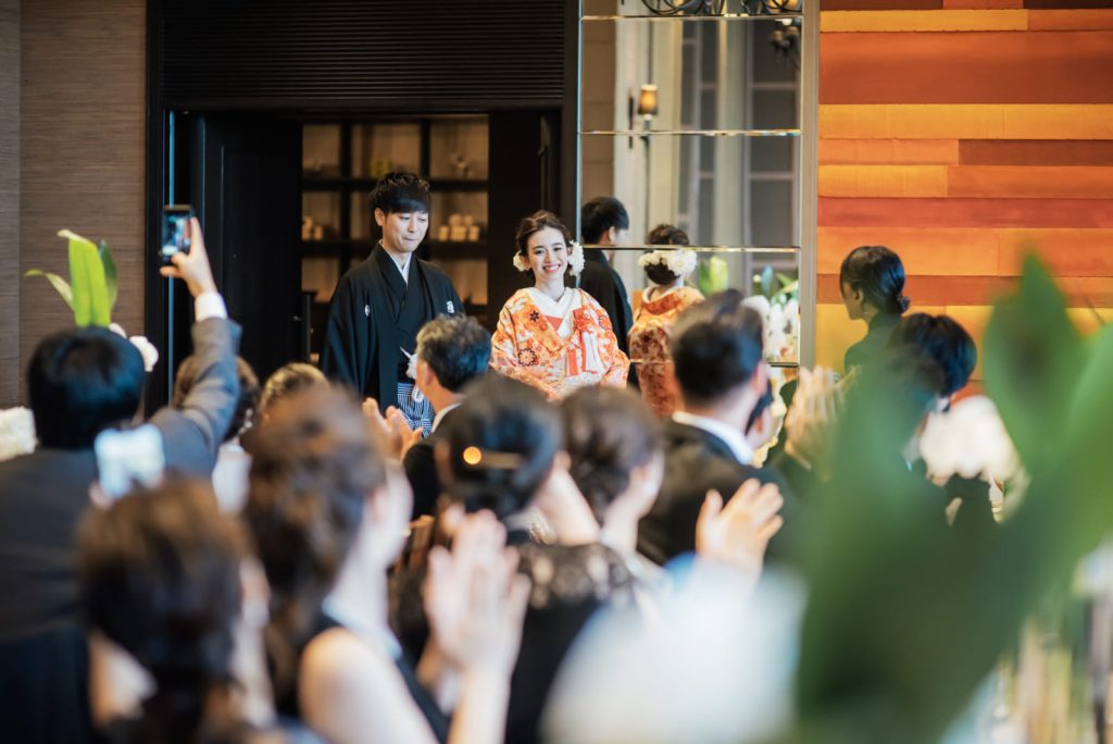 披露宴の結びは色打掛にて