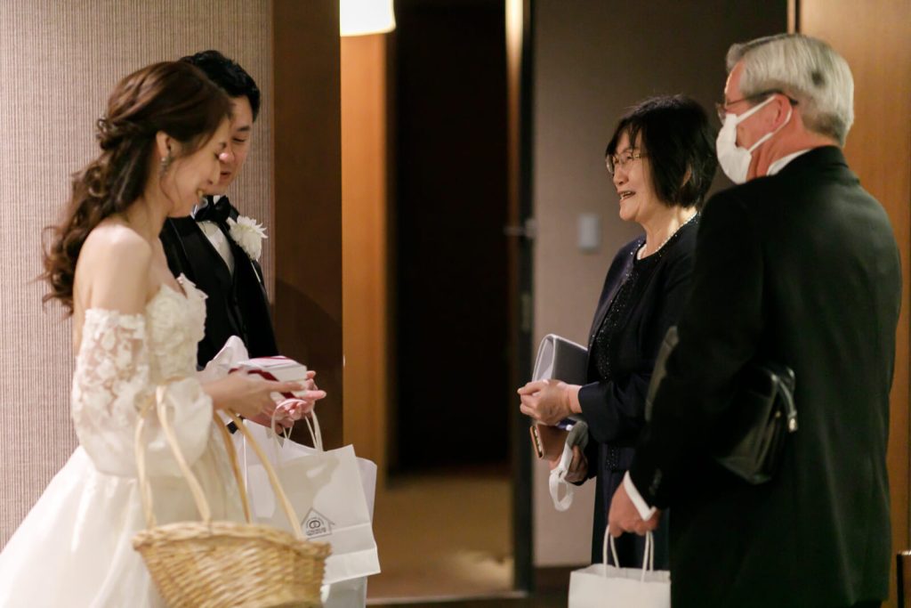 会食後、ご両親へのギフトをお渡しいただきながらお見送りを