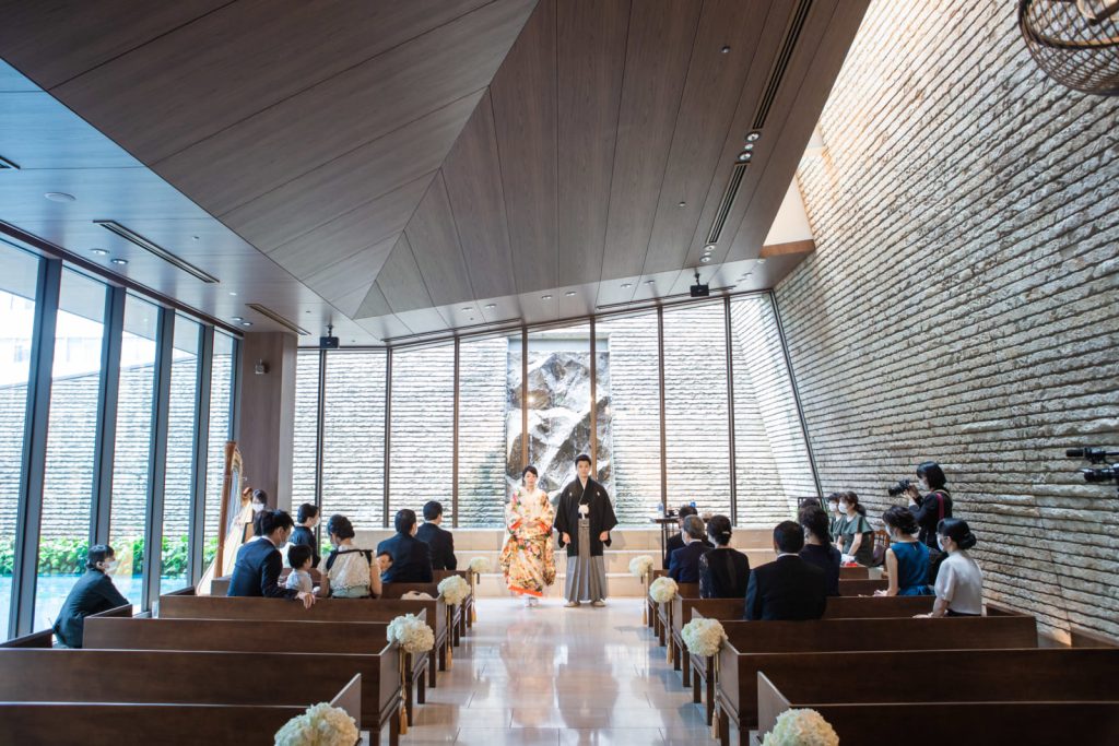 自然光あふれる挙式会場で和装での人前式