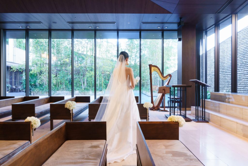 自然光溢れるチャペルにも映える一着