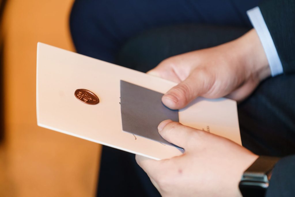 ゲストおひとりおひとりへ待合で小さなお手紙をお渡し