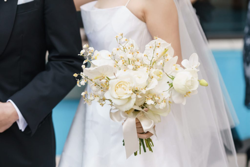 ドレスの雰囲気に合わせて甘くなりすぎないブーケを