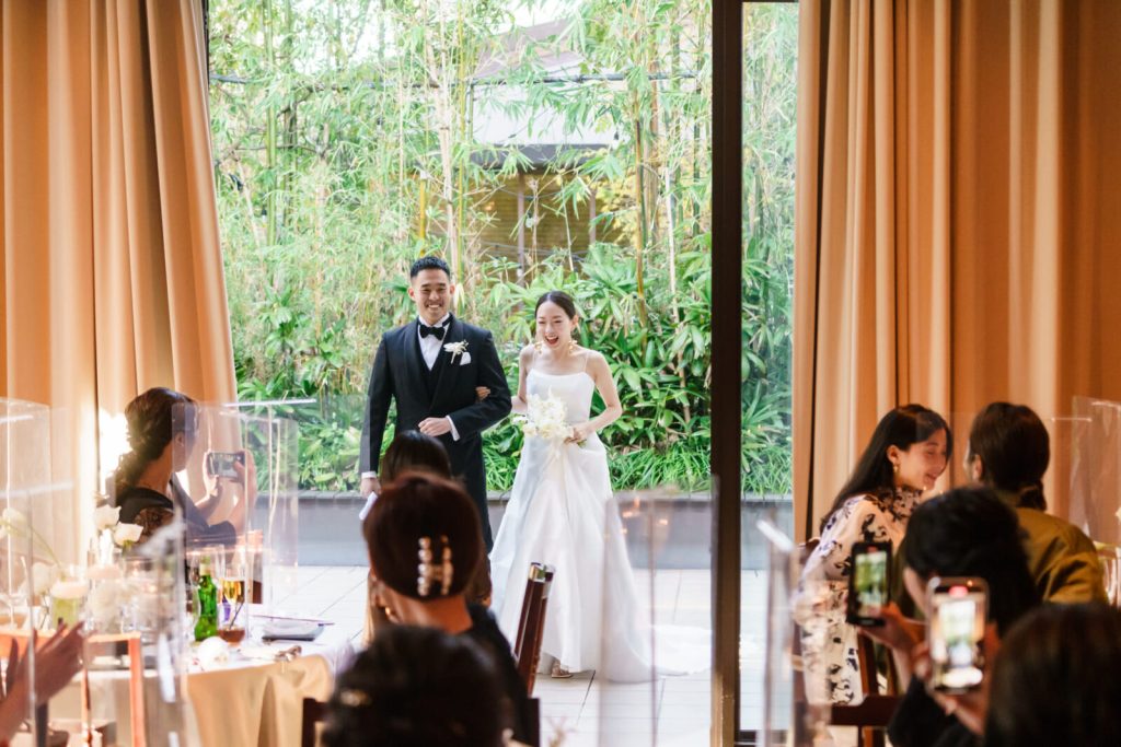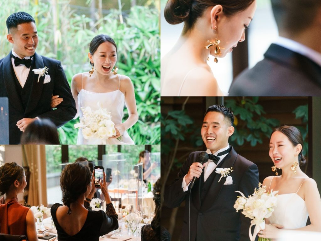 司会者からゲストにもご案内してもらい、おふたりらしさをお食事でも感じていただける工夫を