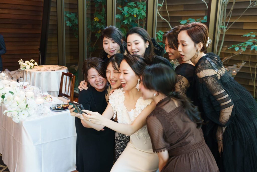 ご友人が笑顔で新婦さまへ届けたのは新郎さまからのサプライズで用意された「エンゲージリング」