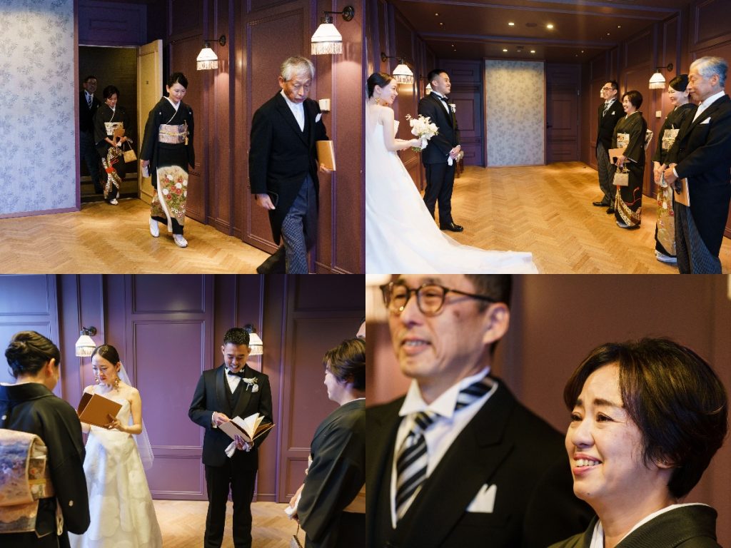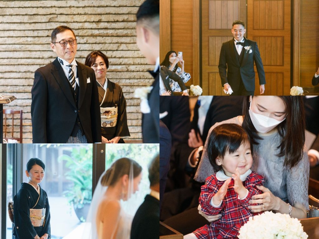 挙式の入場前に晴れ姿を大切なご家族にお披露目します