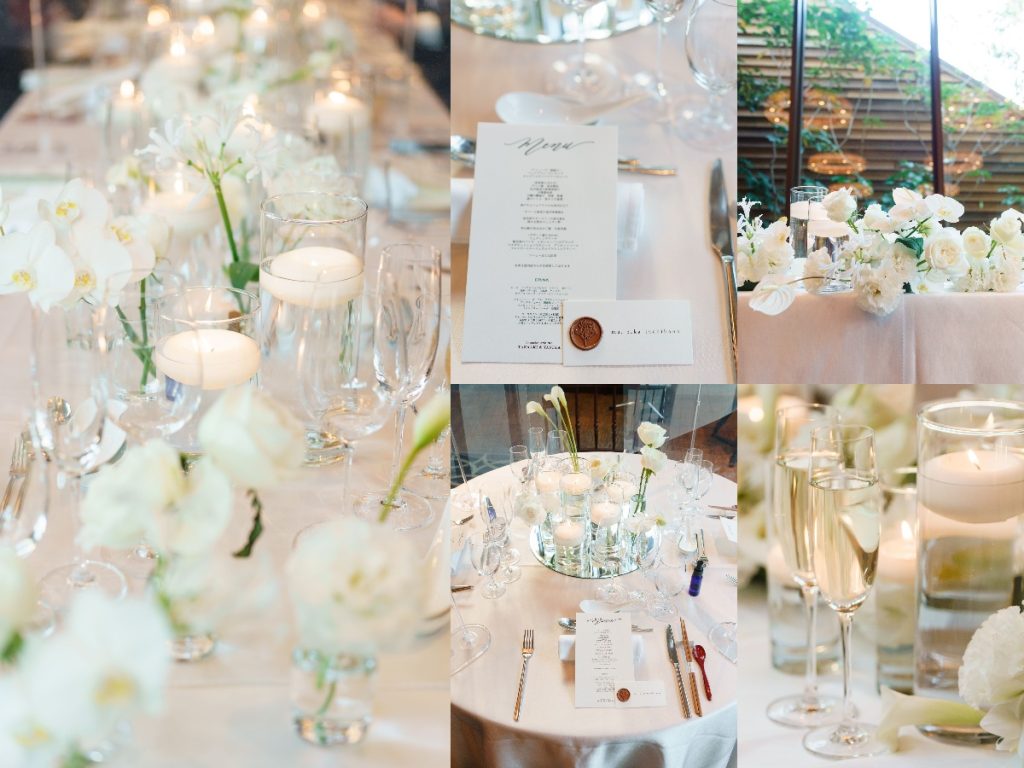 新婦さまのリクエストは「白を基調したシャープな印象のコーディネート」