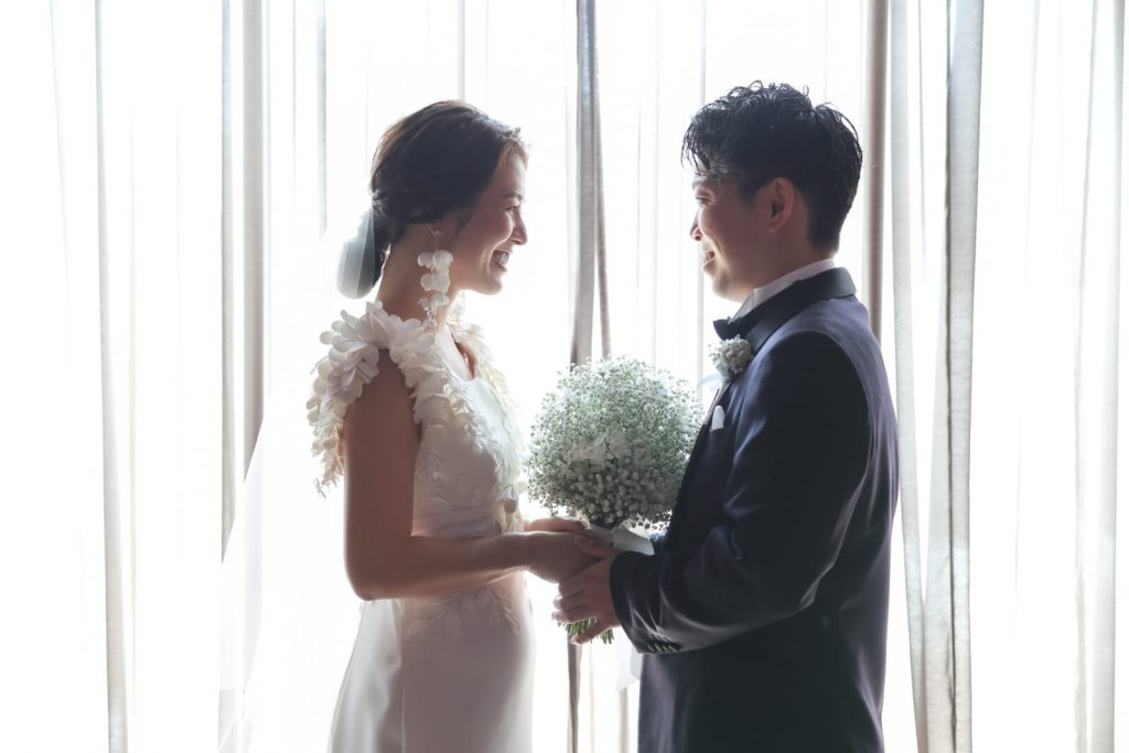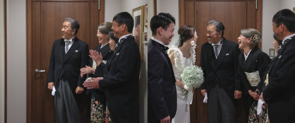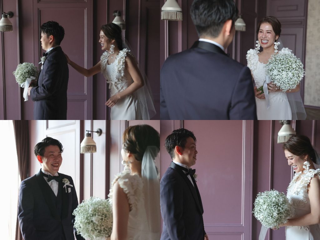 新郎さまはトントンと背中をたたいて合図をされるまでは振り返らずに新婦さまを待ちます
