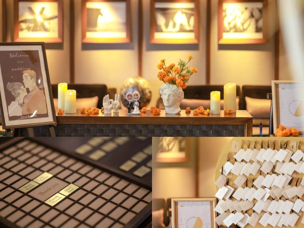 レセプションに用意されたのはゲスト全員分の真鍮のネームプレート