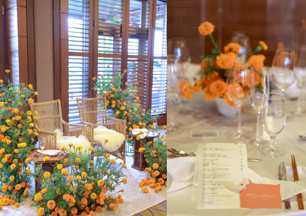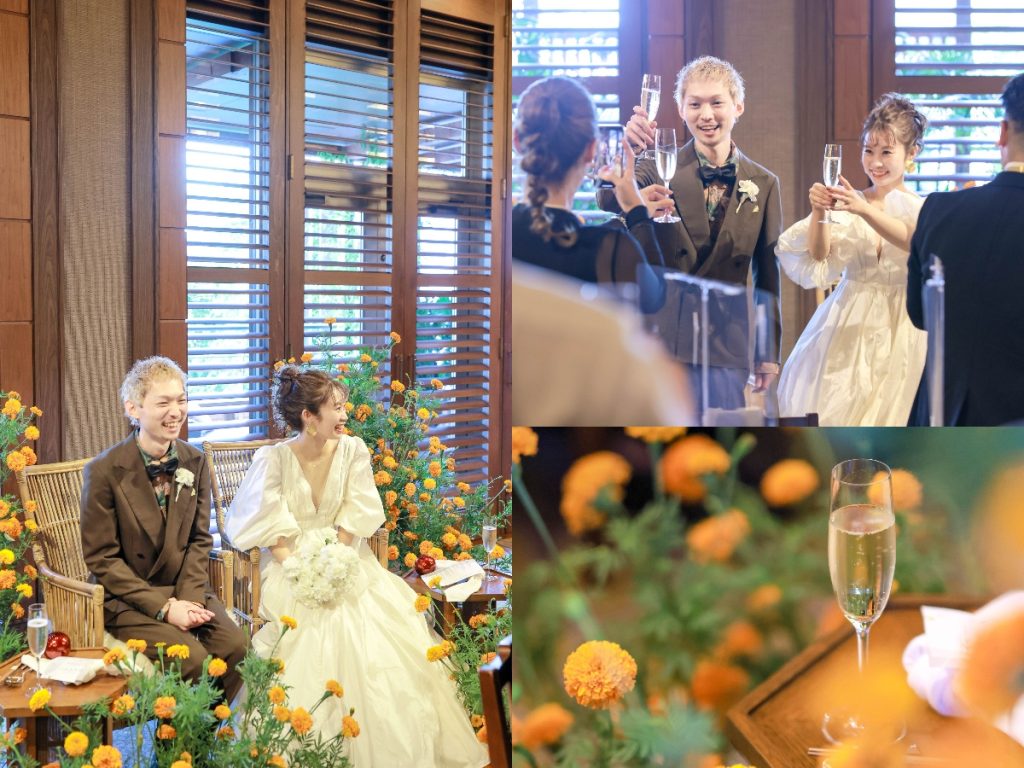 〈2022年8月レポート〉マリーゴールドに囲まれたトレンド感溢れる『ナチュラルウェディング』