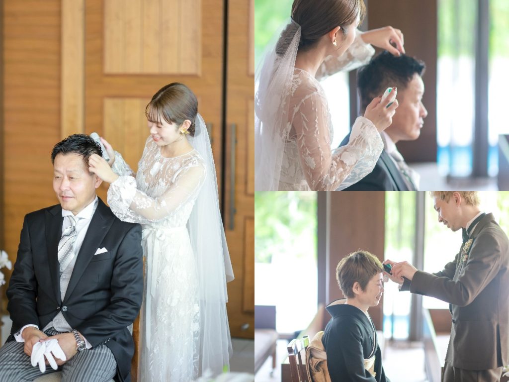 挙式の前にお支度が整ったおふたりの晴れ姿をお披露目する家族の時間