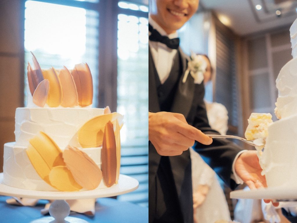 サンクスバイトとは、ウェディングケーキを新郎新婦からお世話になった誰かに、感謝の気持ちを込めて食べさせてあげるゲスト参加型の演出