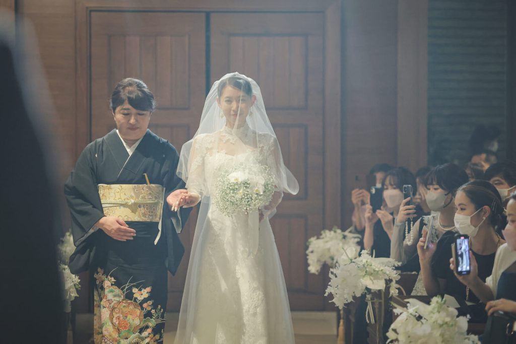 厳かな空気の中 新婦さまの憧れだったキリスト教式が執りおこなわれました