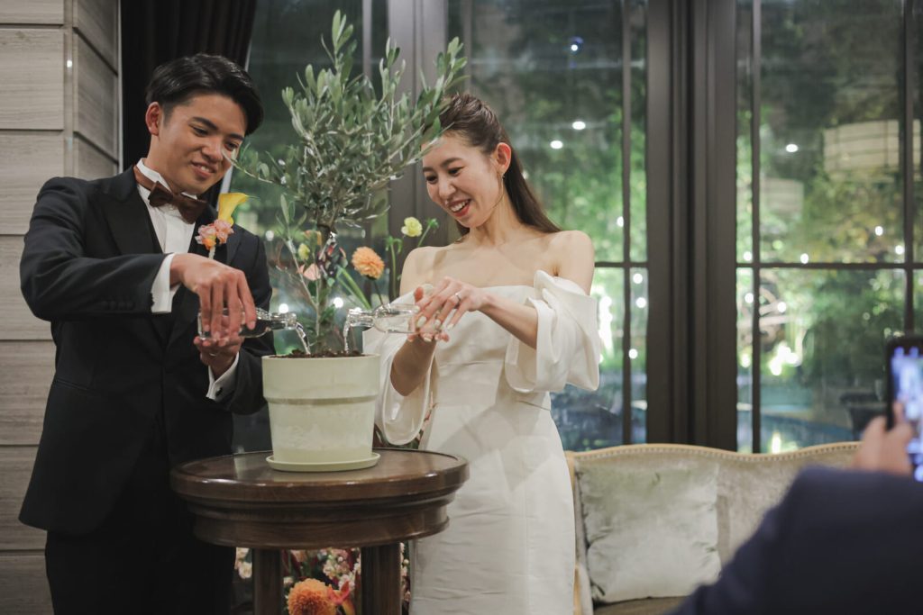 皆さまに土を入れていただいた鉢に披露宴にて私たちが水を注ぎます