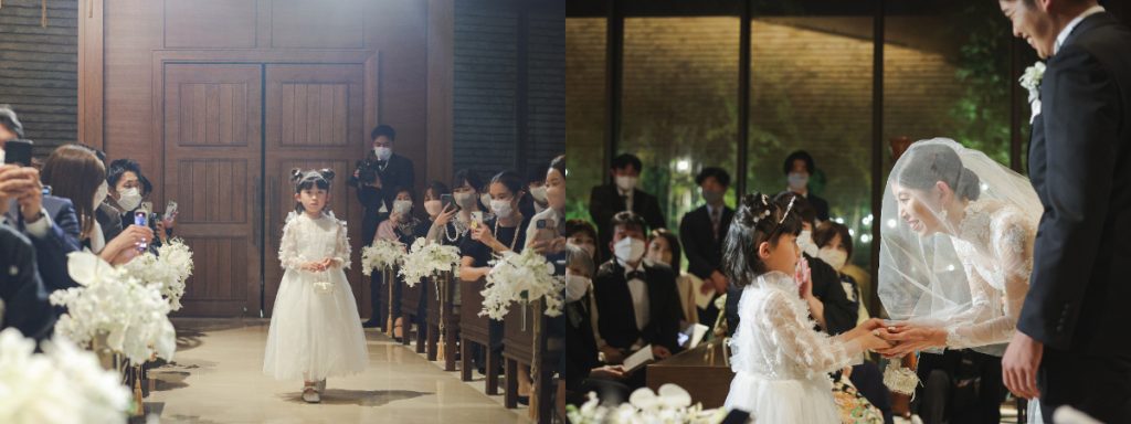 そして真っ白な可愛らしいドレス姿のリングガールが挙式をお手伝いしてくれました