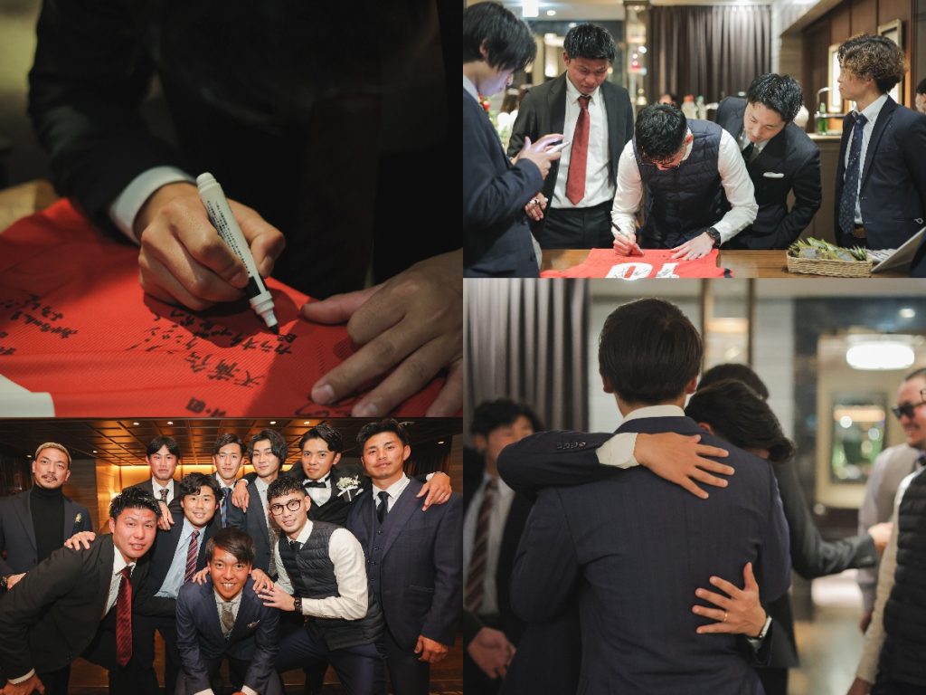 新郎さまが兄のように慕うサッカーの先輩と、おふたりの出会いのキューピット役になってくれたご友人