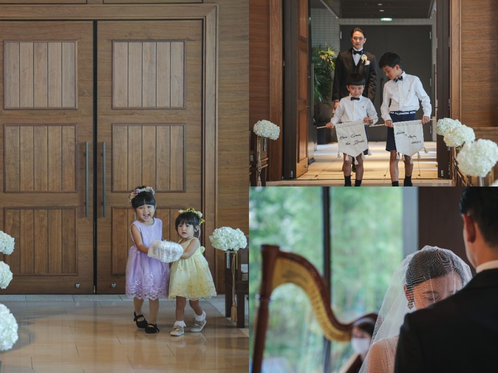 ゲストに新郎新婦の登場をお知らせするフラッグボーイを務めたのは新郎さまの甥御さま