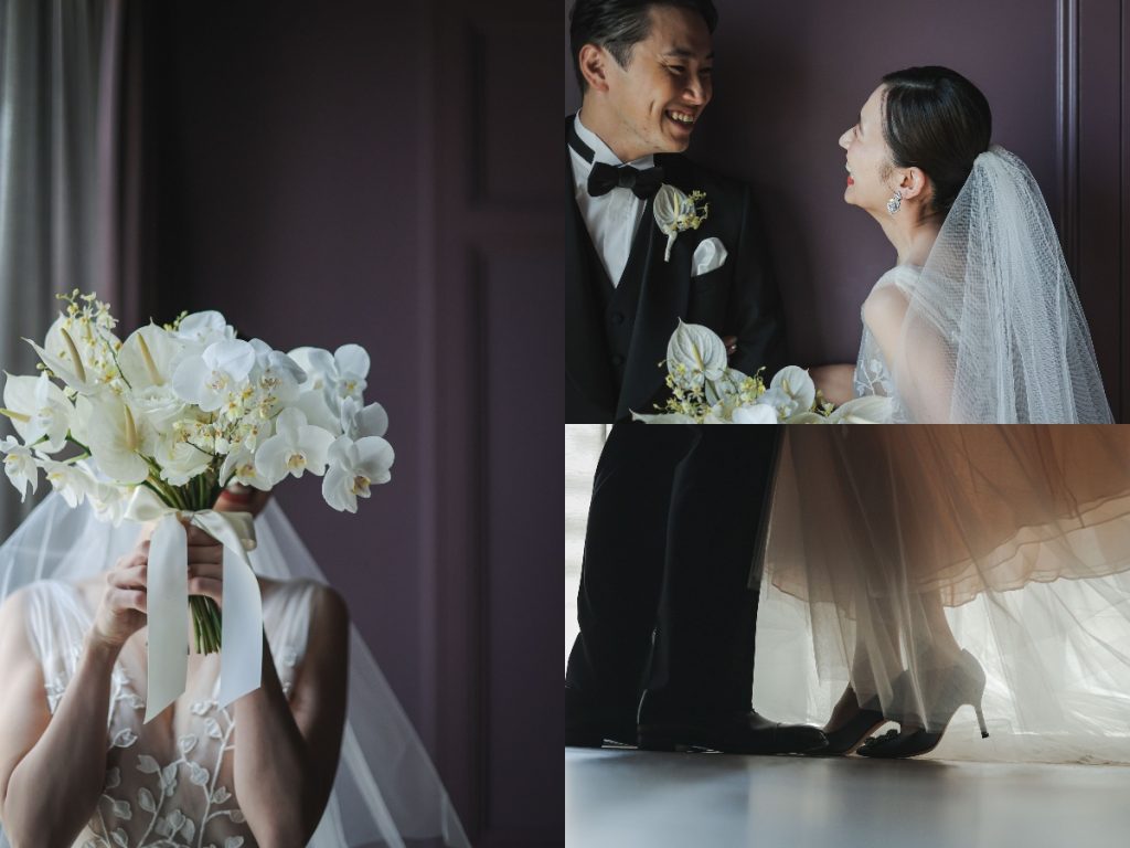 ドレスに合わせてシンプルでモダンな品の良さも感じさせるブーケ