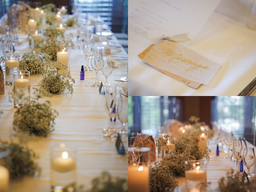 テーブルの上にはゲストひとりひとりに宛てたおふたりからのメッセージをご用意されました