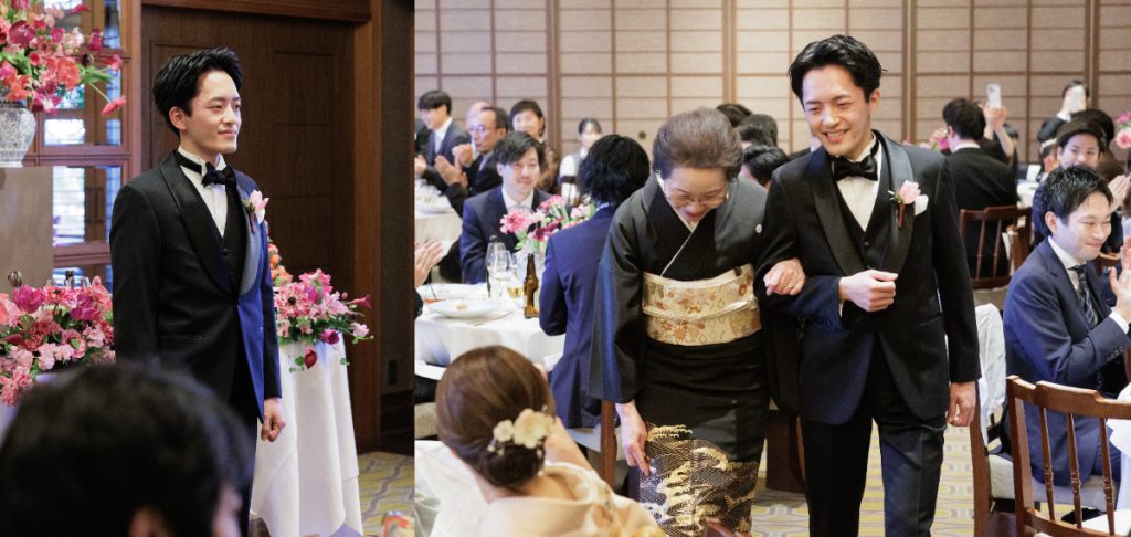 新婦様は甥御様と、新郎様はお祖母様とサプライズ退場