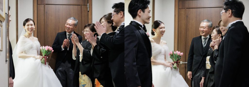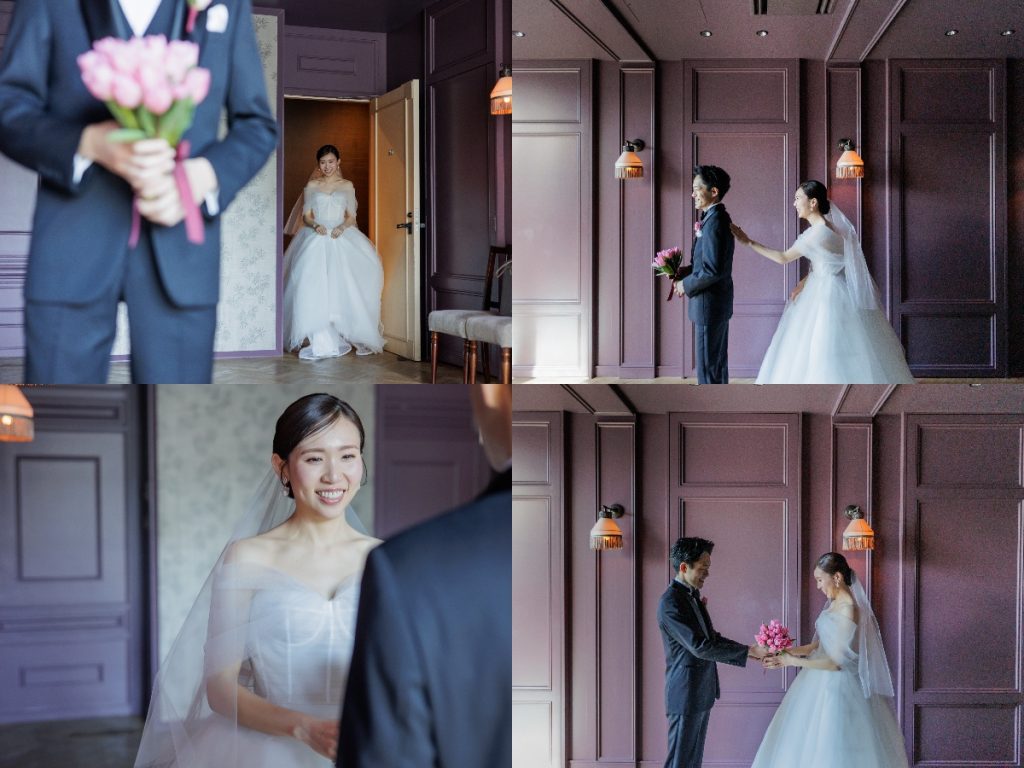 別々に準備を終えた新郎新婦さまがお互いの姿を初めて見せ合うファーストミート