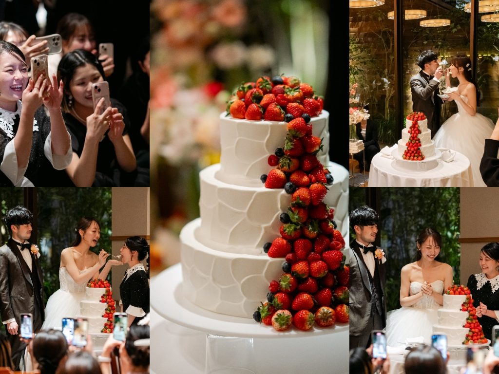 ウェディングケーキは人気の「フローベリー」デザインに