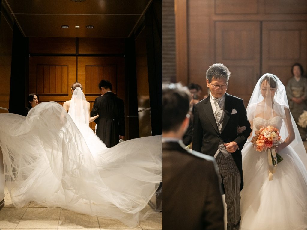 退場時にはふたりとも披露宴が楽しみな気持ちでいっぱいでワクワクでした」