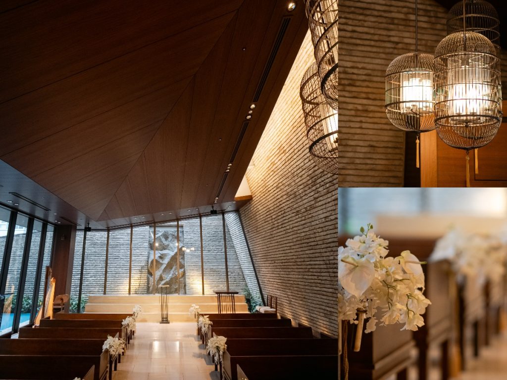 幻想的な雰囲気に包まれまれた夕暮れのチャペルで挙式がスタートします